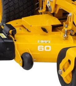 - A fully fabricated 60-inch 10-gauge steel commercial deck shell with top bottom and side reinforcements plus standard 24″ tires give you more ground clearance to easily hop on curbs.