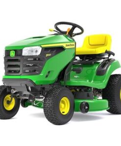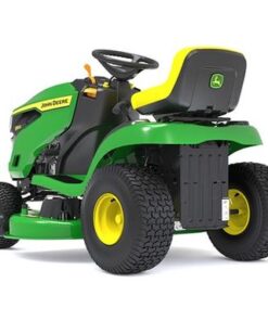 The John Deere S100 Lawn Tractor offers a 17.5 hp engine, 42-inch Edge™ mower deck, and hydrostatic transmission with side-by-side pedals. Designed for comfort and efficiency, it’s perfect for lawns up to 1 acre.